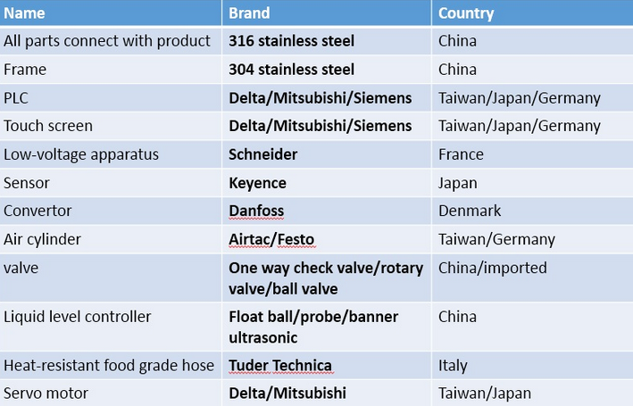 3. Sve komponente koje dolaze u kontakt s proizvodom izrađene su od nehrđajućeg čelika od 316 L, koji se uvozi i obrađuje CNC mašinama.